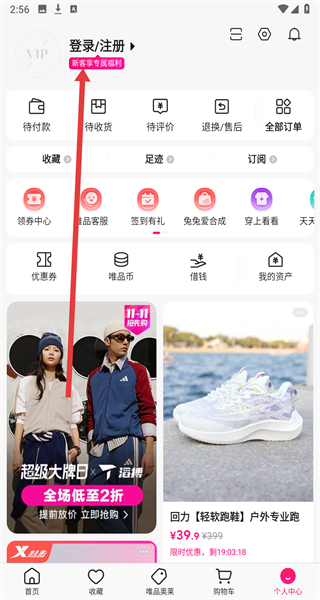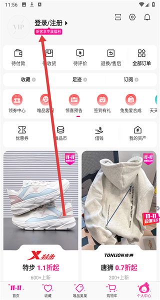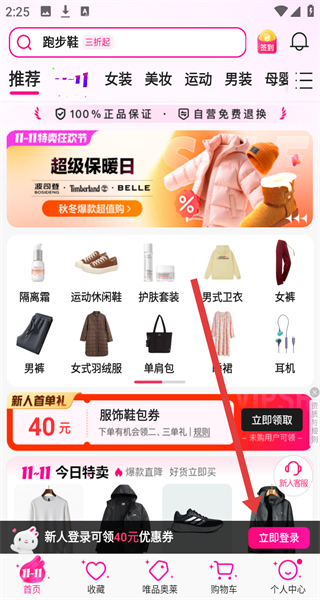2、在唯品會APP首頁點擊“立即登錄”,進入登錄頁面。