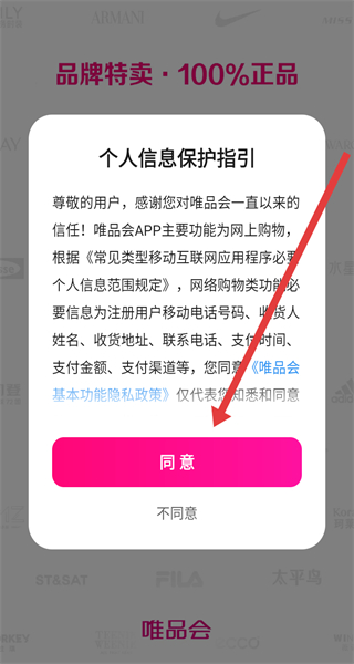 1、點擊“個人信息保護指引”彈窗的“同意”,進入主頁面。