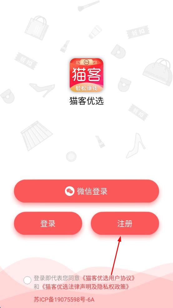 2、在“我的”頁(yè)面,點(diǎn)擊“注冊(cè)”按鈕,進(jìn)入注冊(cè)流程。