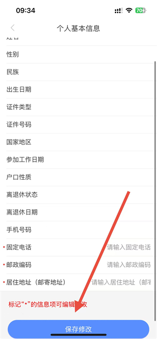 3、在個(gè)人基本信息頁(yè)面,對(duì)可編輯的信息項(xiàng)進(jìn)行修改,修改完成后點(diǎn)擊保存修改按鈕完成個(gè)人信息編輯。