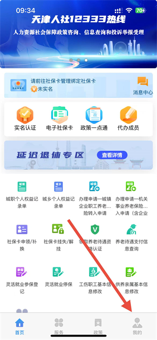 1、打開天津人力社保app,點(diǎn)擊右下角我的選項(xiàng),進(jìn)入個(gè)人頁(yè)面。