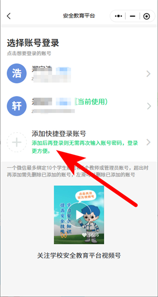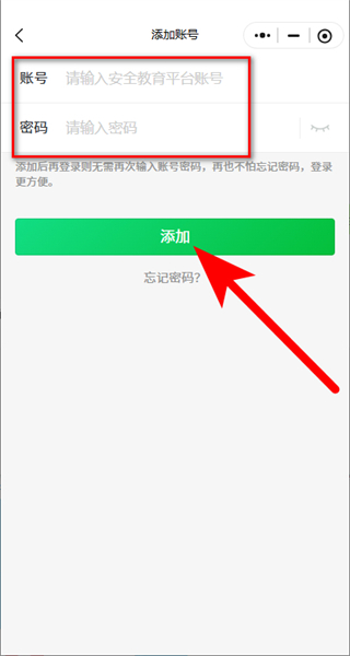 4、在添加賬號頁面,輸入安全教育平臺的賬號和密碼,點擊添加按鈕,即可添加另外一個賬號。