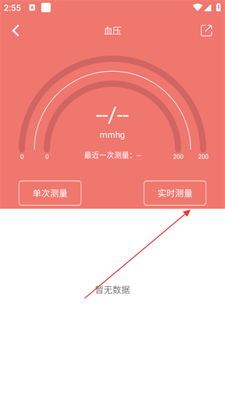 3、在血壓頁面點(diǎn)擊實(shí)時(shí)測(cè)量,即可進(jìn)行血壓測(cè)量操作。