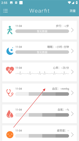 2、在主頁面,點(diǎn)擊血壓選項(xiàng)。