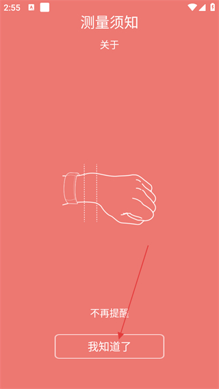 1、打開Wearfit APP,在測(cè)量須知頁面點(diǎn)擊我知道了。