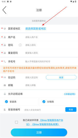 2、在注冊(cè)的界面內(nèi),點(diǎn)擊國(guó)家或地區(qū)選擇的功能按鈕。
