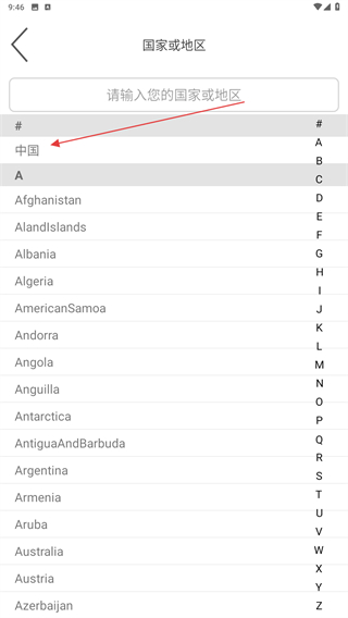 3、進(jìn)入國(guó)家或地區(qū)選擇的界面內(nèi),選擇后并點(diǎn)擊即可。