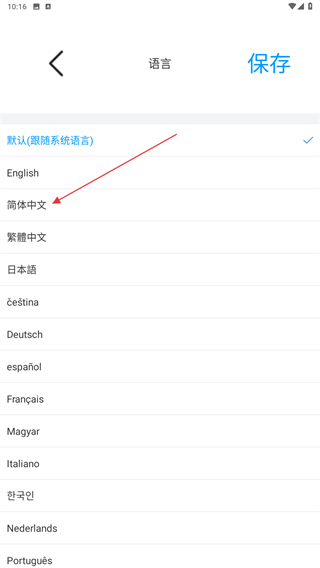 4、進(jìn)入語(yǔ)言的頁(yè)面內(nèi),選擇要更換的語(yǔ)言并點(diǎn)擊。