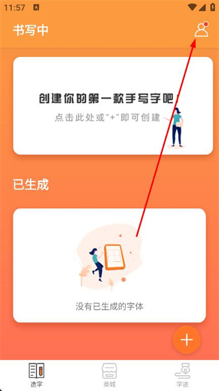 1、打開手跡造字app,點擊右上角的頭像圖標。