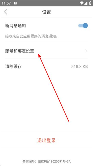 3、在設置頁面里,點擊賬號和綁定設置選項。