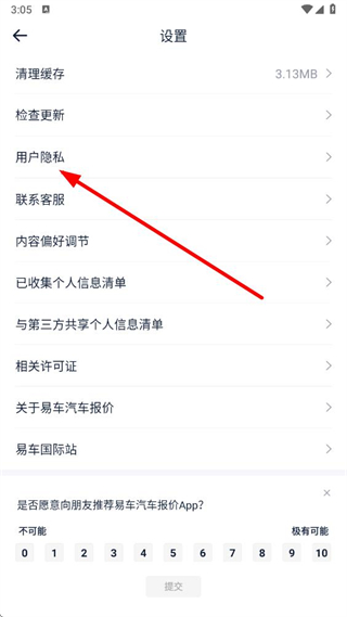2、在設(shè)置頁面中,選擇用戶隱私選項進入,可管理隱私相關(guān)的功能設(shè)置。