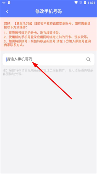 4、按頁(yè)面提示,先掛失原賬號(hào)綁定的云卡、洗衣袋,再用新手機(jī)號(hào)登錄并重新綁定。