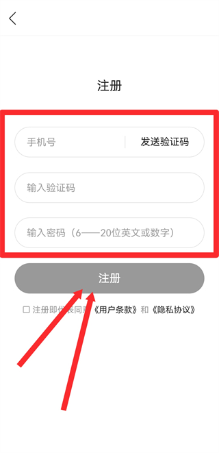 4、在該頁面輸入完手機號等信息,點擊注冊按鈕,完成賬號注冊操作。