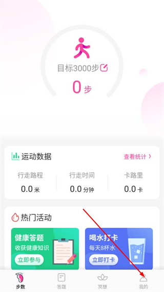 1、打開蜜蜂計(jì)步app的步數(shù)頁面,點(diǎn)擊底部導(dǎo)航欄的我的選項(xiàng),進(jìn)入個(gè)人中心界面。