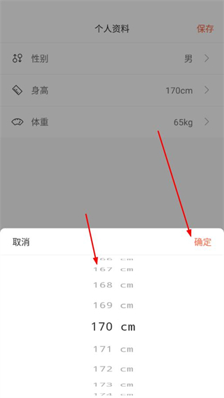 3、在個(gè)人資料頁面點(diǎn)擊身高,彈出身高選擇的下拉列表。