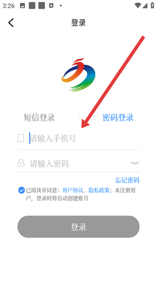 4、在成功后,可點擊輸入框依次輸入手機(jī)號和密碼信息,點擊登錄按鈕即可完成登錄。
