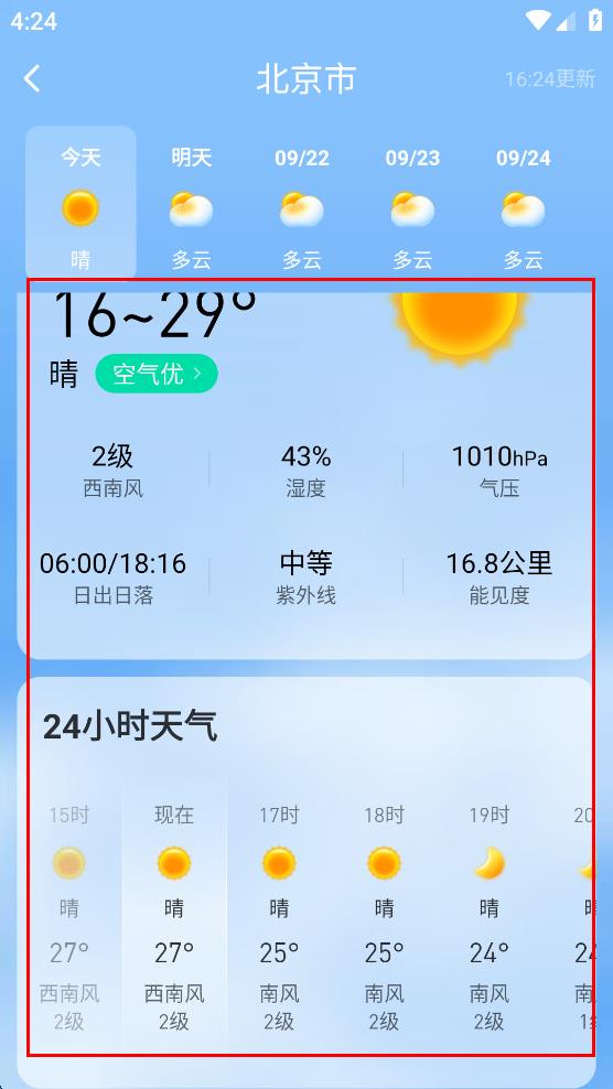 24小時(shí)預(yù)報(bào):直觀展示未來24小時(shí)氣溫趨勢,當(dāng)日天氣變化提前知道