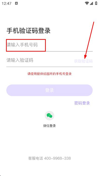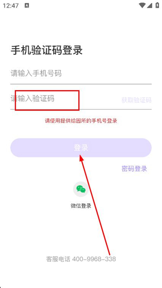 3、在驗證碼登錄頁面,輸入需要登錄的手機號并點擊獲取驗證碼。