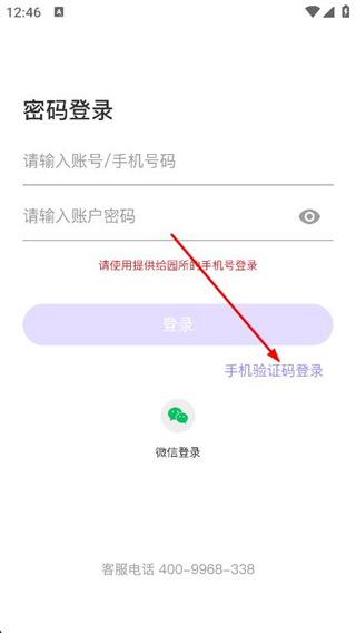 2、進入登錄頁面后,找到并點擊右下方的手機驗證碼登錄選項。
