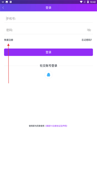 3、在登錄的界面內(nèi),點擊左側(cè)快速注冊的功能按鈕。