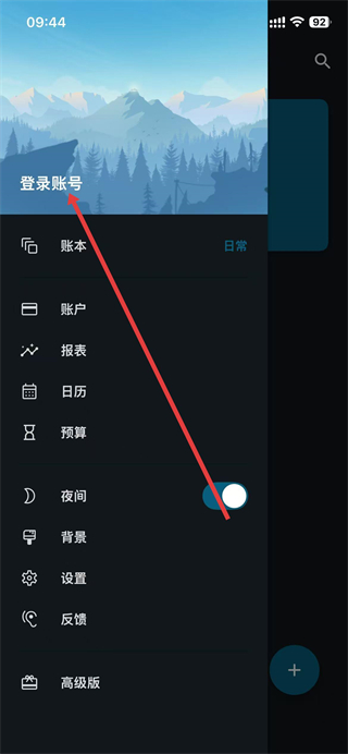 2、在側(cè)邊欄中,點(diǎn)擊登錄賬號(hào)選項(xiàng),進(jìn)入登錄頁面。