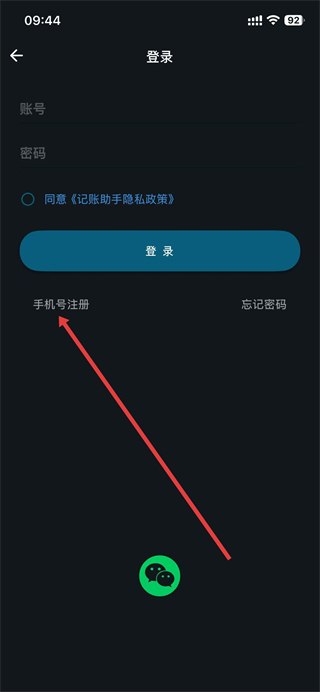3、在登錄頁面,找到并點(diǎn)擊下方的手機(jī)號(hào)注冊(cè)選項(xiàng)。