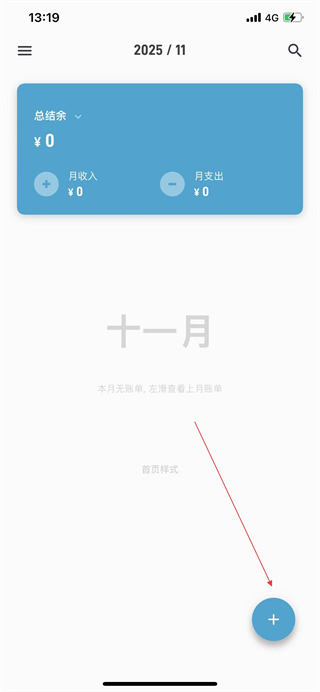 1、打開記賬助手APP,點(diǎn)擊右下角的+號(hào),進(jìn)入記賬頁面。