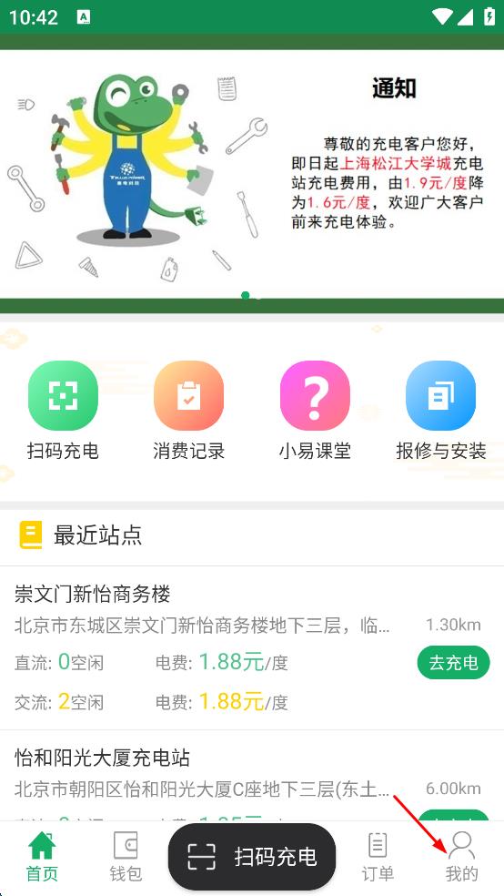 1、打開充電軟件,點擊頁面底部最右側“我的”選項,進入個人頁面。