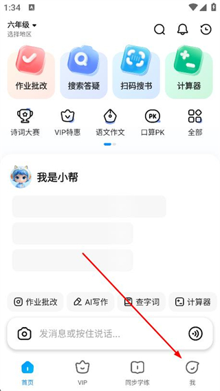 1、打開作業(yè)幫,點擊導(dǎo)航欄的我,進(jìn)入個人中心頁面。