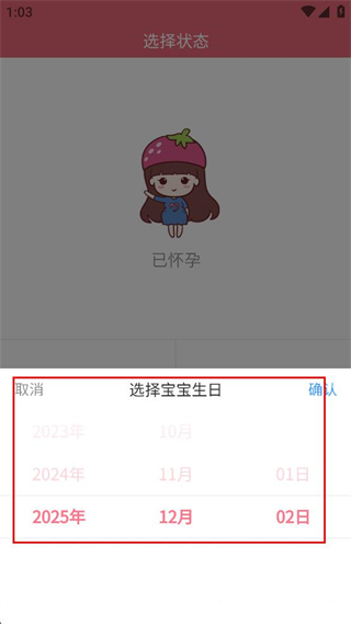 3、在彈出的選擇寶寶生日界面,選定對(duì)應(yīng)的年份月份及日期,準(zhǔn)備完成信息確認(rèn)。