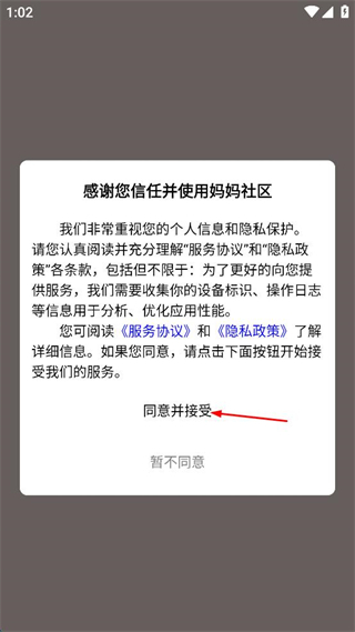 1、打開軟件看到服務(wù)協(xié)議彈窗,點(diǎn)擊同意并接受按鈕,進(jìn)入軟件的狀態(tài)選擇界面。