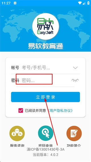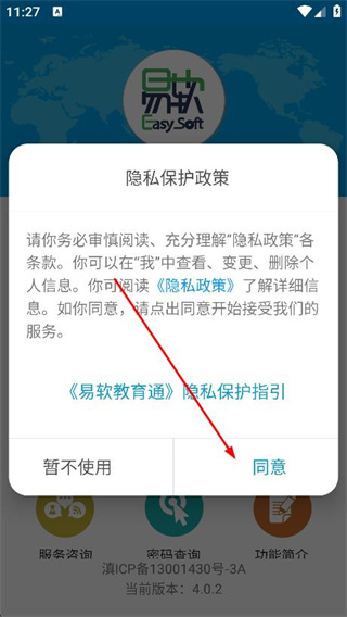 1、打開易軟教育通app,在隱私政策窗中點(diǎn)擊同意按鈕。
