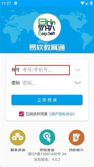 2、在登錄頁面,點(diǎn)擊帳號(hào)輸入框,填寫考號(hào)或手機(jī)號(hào)。