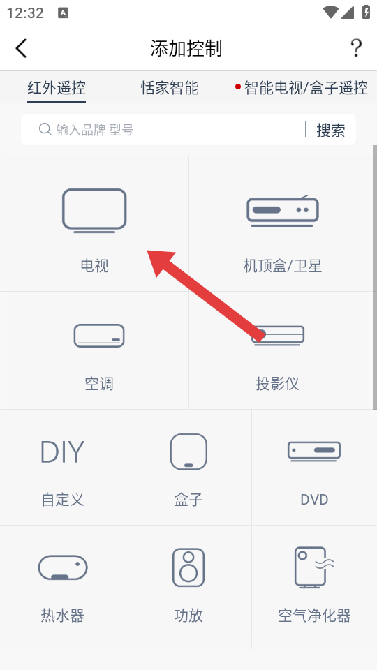 2、當我們在添加控制頁面中,需要點擊電視的選項,然后進入電視品牌選擇界面。
