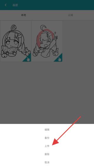 1、打開角蟲繪圖APP,進(jìn)入畫冊(cè)的頁面,找到要發(fā)布的作品。