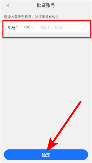 3、進(jìn)入驗(yàn)證賬號頁面,輸入手機(jī)號,點(diǎn)擊確定按照提示完成后續(xù)操作。