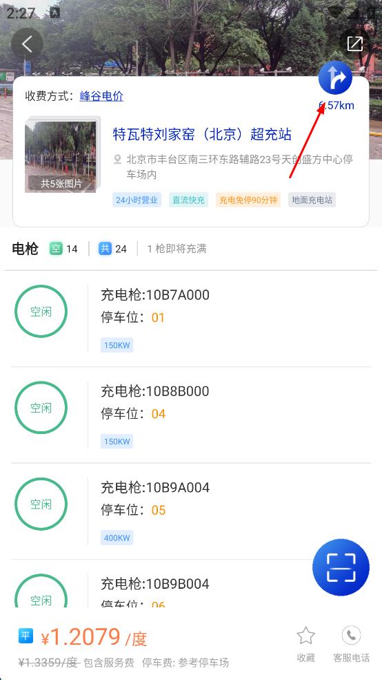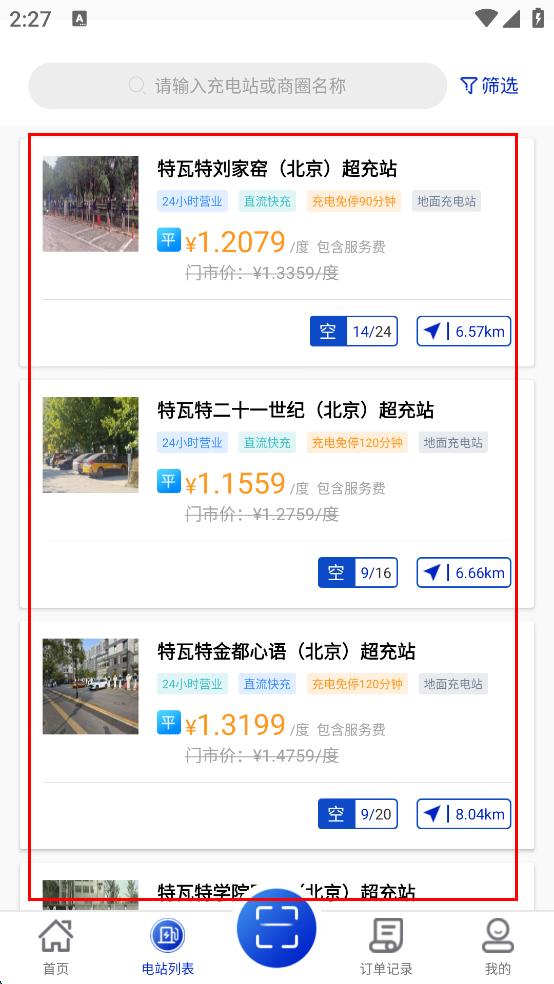 2、在電站列表頁面,瀏覽眾多超充站信息,找到充電站,點擊該超充站,進入其詳情頁面。