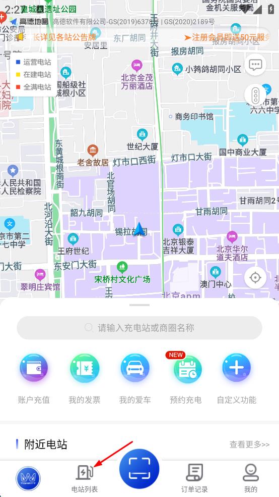 1、打開充電軟件,進入軟件界面,在界面下方的功能欄里,找到標有“電站列表”字樣的選項,點擊該選項,進入電站列表頁面。