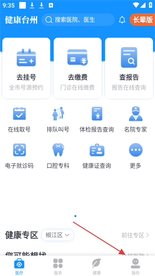 1、打開健康臺州APP,在首頁點擊去掛號,進(jìn)入預(yù)約掛號頁面。