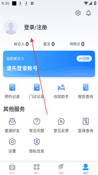 1、打開健康臺州APP,點擊底部導(dǎo)航欄中的我的選項。