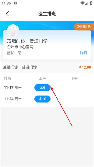 5、在醫(yī)生排班頁面選擇就診時段,即可完成預(yù)約掛號操作。