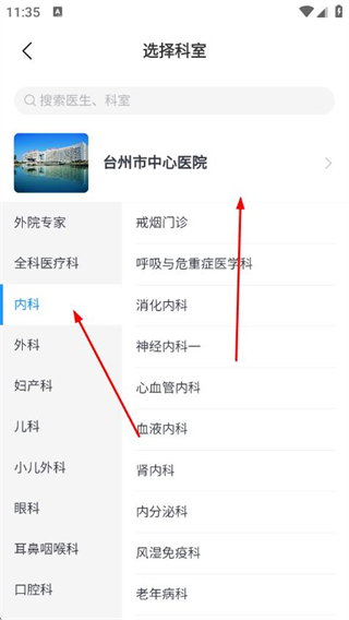 3、在選擇科室頁面選擇就診科室,進(jìn)入門診選擇頁面。