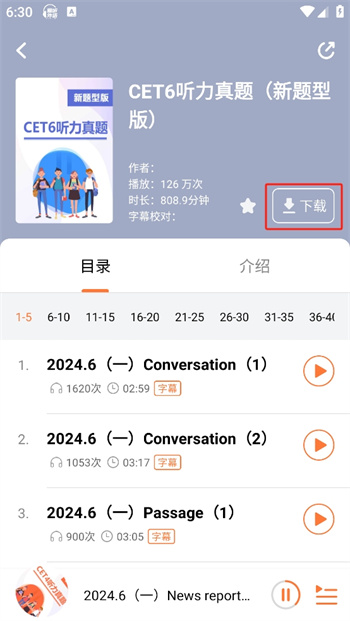 4、下載音頻之前需要先激活,才可以在這里看到【下載】的按鍵,點(diǎn)擊這個就可以成功的將該資源下的所有音頻都免費(fèi)的下載下來,離線就可以聽到免費(fèi)內(nèi)容。