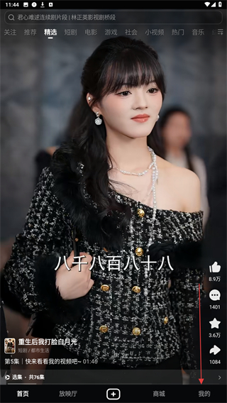 等待一會后,視頻緩存完成,點擊右下角【我】按鈕,進入到個人界面。