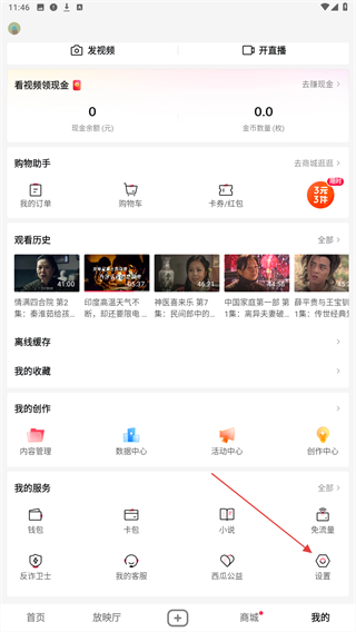 2、進入我的頁面內(nèi),點擊下方設置的功能按鈕。