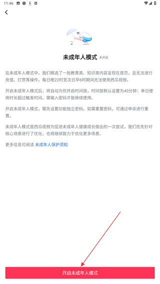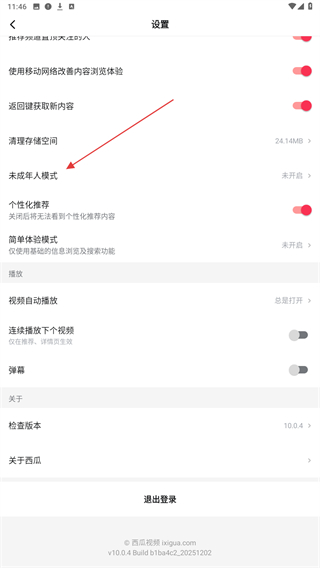 3、進入設置的頁面內(nèi),點擊下方未成年人模式。