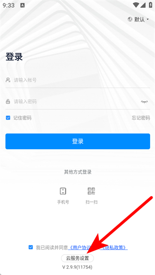 1、打開登錄界面,點擊云服務(wù)設(shè)置,進入云服務(wù)設(shè)置頁面。