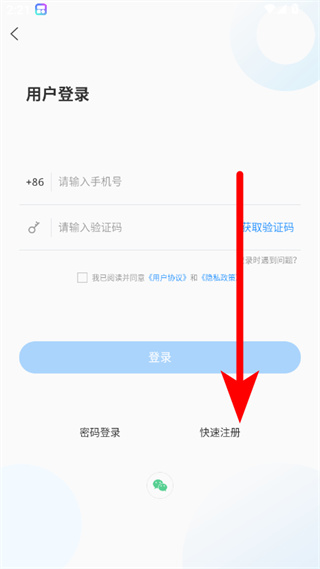 3、在用戶登錄頁面,點(diǎn)擊快速注冊選項(xiàng),進(jìn)入用戶注冊頁面。