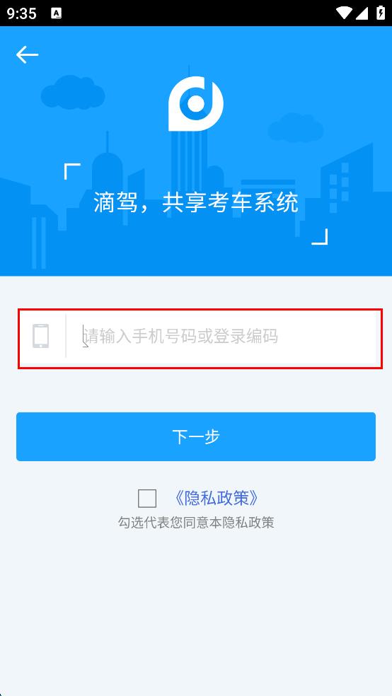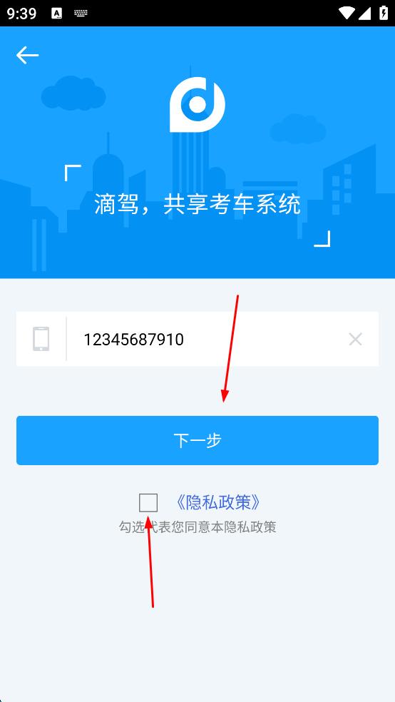 4、勾選“隱私政策”選項(xiàng),然后點(diǎn)擊“下一步”按鈕,即可繼續(xù)后續(xù)登錄流程。