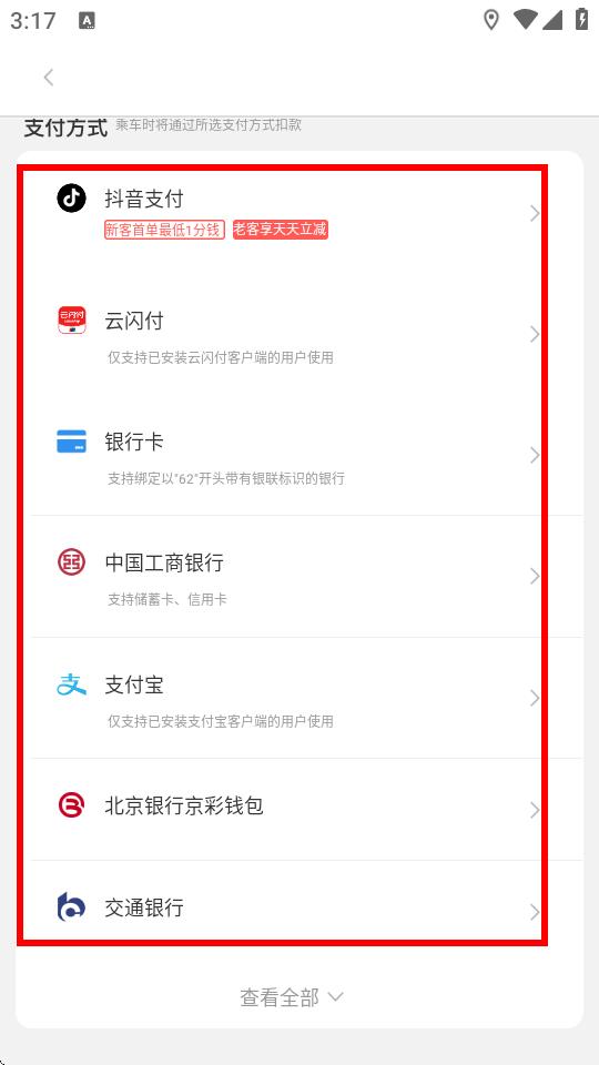 4、在支付方式列表中,選擇您想要使用的支付方式,如抖音付、云閃付、銀行卡等,按照提示完成支付方式綁定。